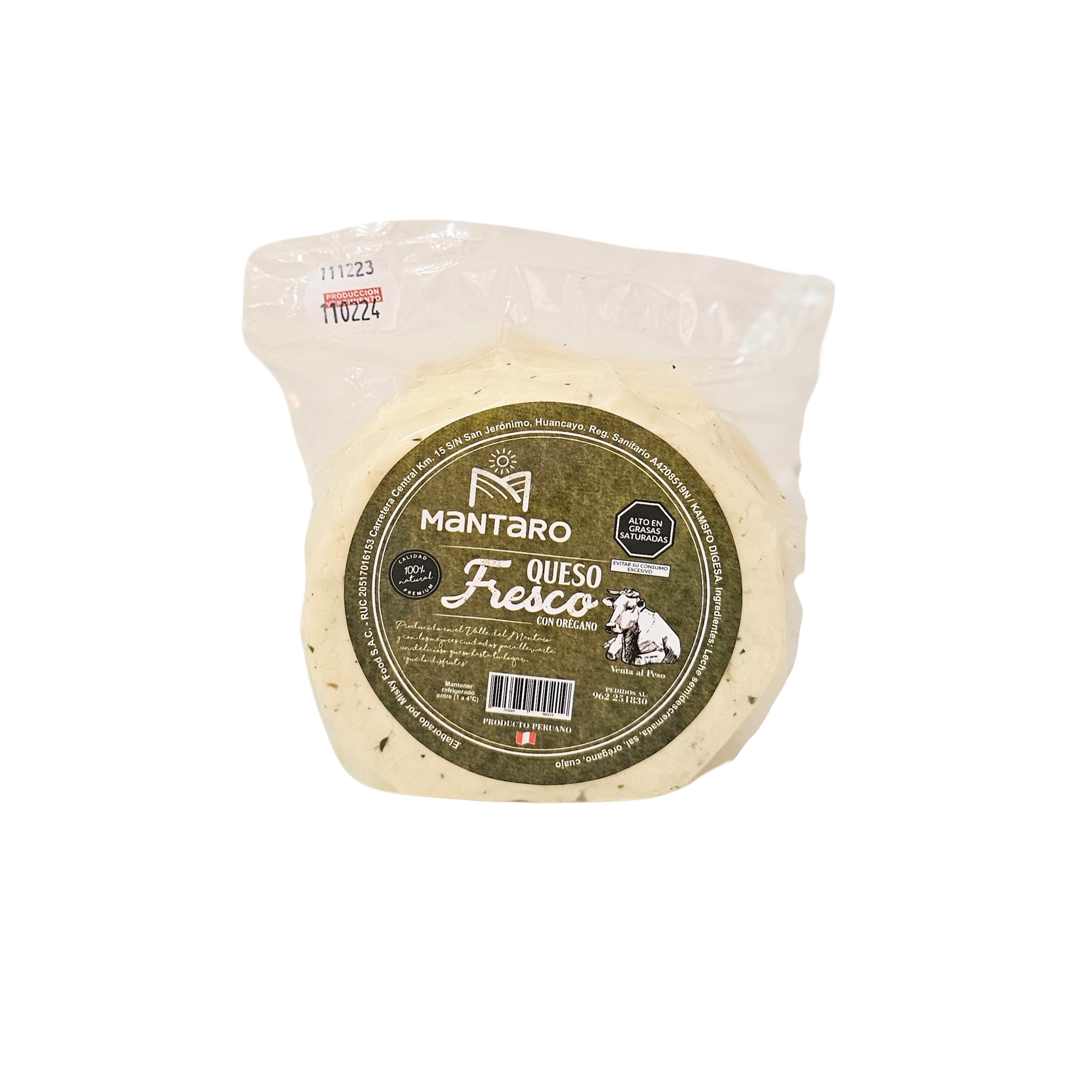 Queso fresco con orégano 500g Mantaro